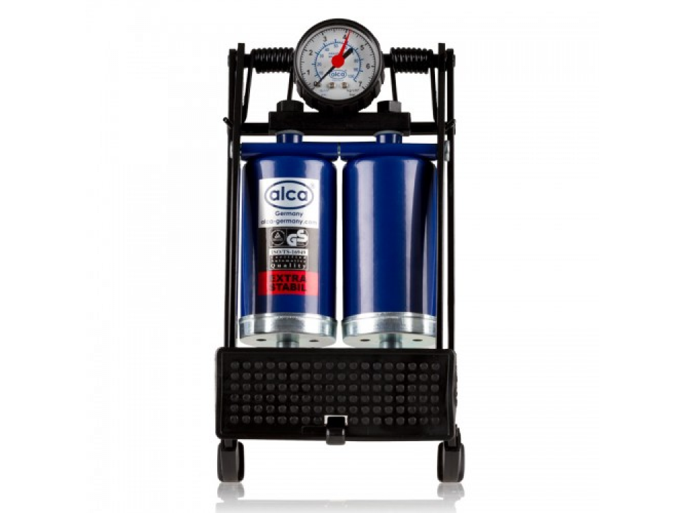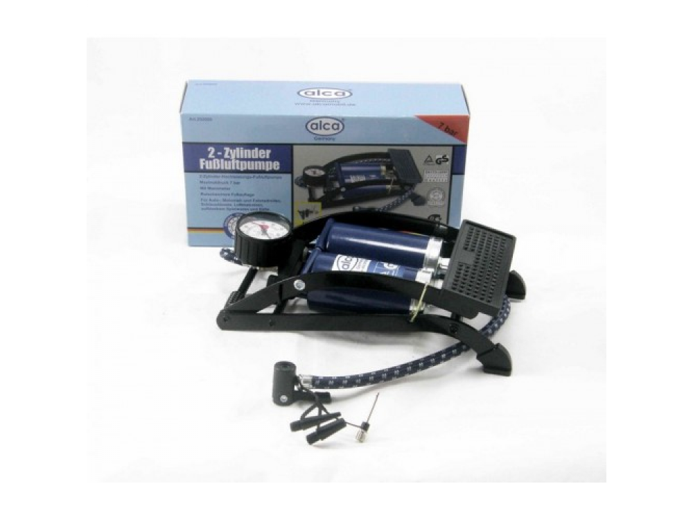 Насос ножной два цилиндра, 7 бар, с манометром, шланг 45 см., 4 адаптера для накачки шин автомобилей, мячей, велосипедов и т.д..
