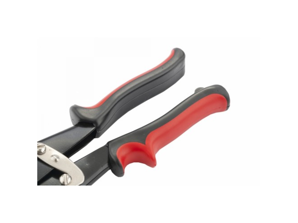 Двойной рычажный механизм позволяет при минимальных усилиях достигать максимального усилия реза. Твердость режущих кромок 56 HRc. Специальные насечки на режущих кромках не позволяют обрабатываемому материалу выскальзывать. Имеют изогнутый профиль для более эффективного применения при фигурной резки листового металла. Оснащены удобными эргономичными обрезиненными рукоятками.